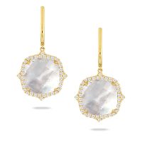Dress up or dress down with these bold yet delicate 18K gold, diamond, quartz, and Mother-of-Pearl earrings from Doves add the perfect touch of sophistication to any outfit.