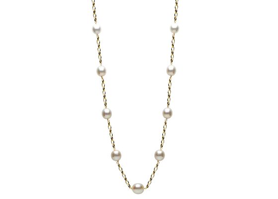 This 14K yellow gold South Sea Pearl necklace features fifteen South Sea Baroque pearls set in a tin cup design along a thirty-nine inch necklace.